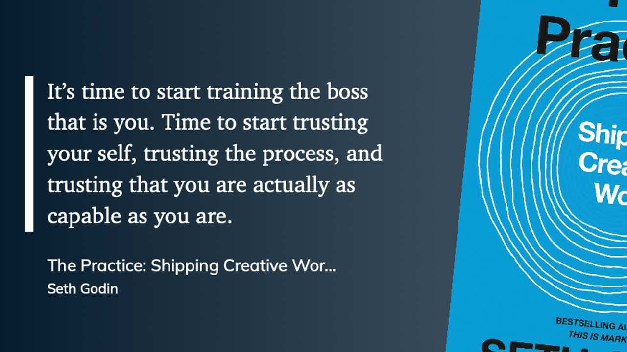 In The Practice: Shipping Creative Work, Seth Godin writes, “It’s time to start training the boss that is you. Time to start trusting your self, trusting the process, and trusting that you are actually as capable as you are.”