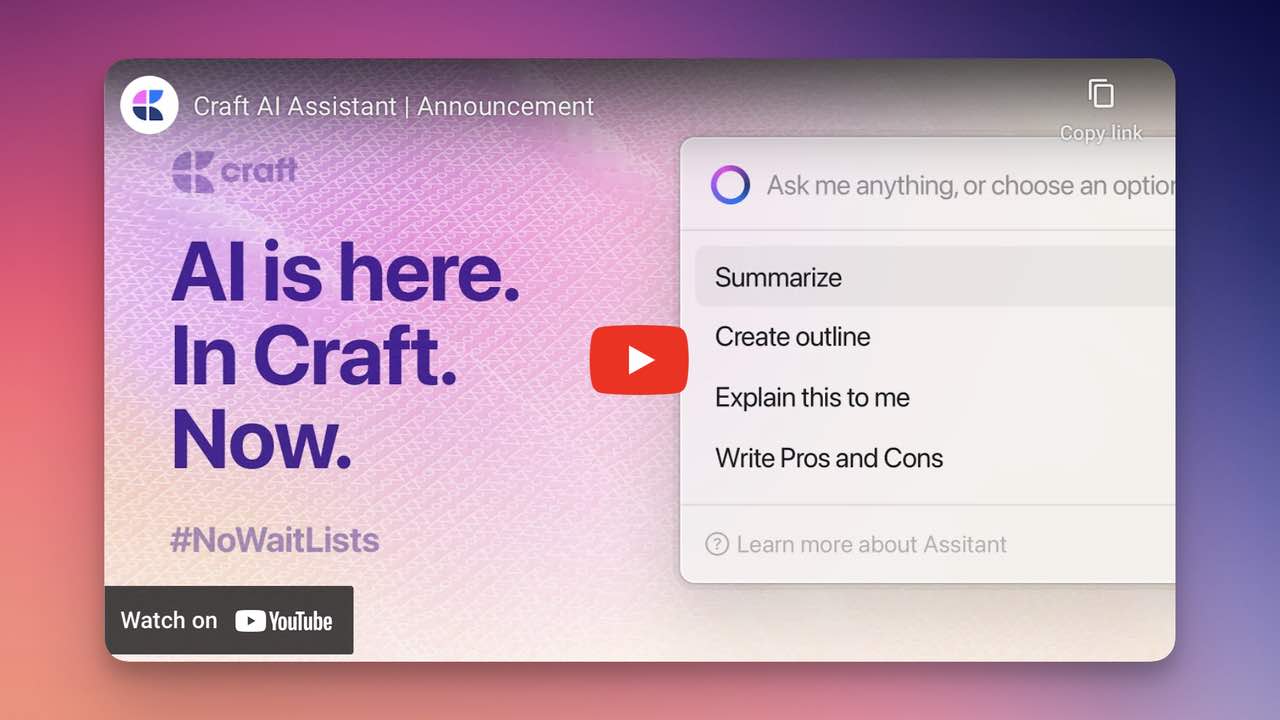 To use AI, you can sign up for a free account at ChatGPT. Some apps like Craft have AI built-in. All you have to do is type ⌘/return and it comes up. Notion recently implemented AI capabilities as well, but I haven’t tested them out.